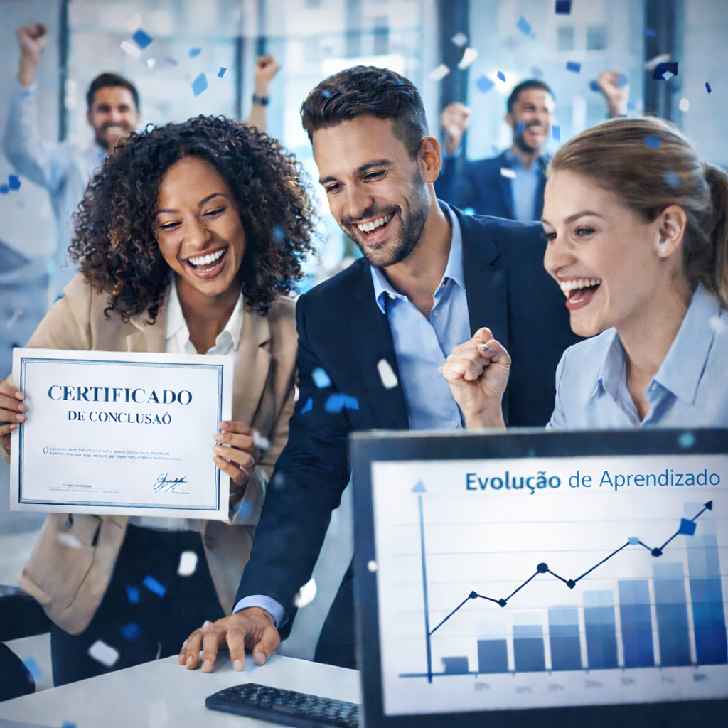 ✅ Você acompanha o quanto já avançou, conclui os módulos no seu ritmo e recebe certificados pra fortalecer currículo e LinkedIn.